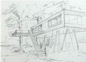 Um so mehr verwundert es, wenn ein Haus aufgehängt oder aufgestelzt wird. Aber auch das geht, besonders wenn Bäume in der Nähe sind die als „Fundamente“ dienen. |