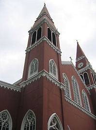 Auf meiner Reise durch das landschaftlich sehr schöne Costa Rica konnte ich auch interessante Architektur studieren. Gespannt war ich auf die im Reiseführer in der Stadt Grecia angekündigte Metallkirche. Rein äußerlich unterscheidet sich die Metallkirche kaum von einer aus Stein errichteten neugotischen Kirche. Man muss schon ganz genau hinschauen, um die miteinander verschweißten Stahlplatten zu erkennen. Selbst Fenstergewände, Fenster und Türen sind aus Metall.