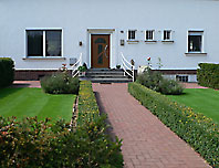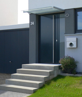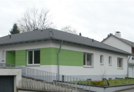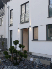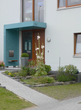 Das Haus wurde an ein bestehendes Gebäude angebaut. So ergab sich ein Höhenunterschied Straße/ Eingang von ca. 1,00 m. Dies sollte behindertengerecht gestaltet werden. |