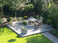 Der ruhige in Platz im hinteren Teil des Gartens lädt zum verweilen ein. Nach der Fertigstellung ist Ruhe eingekehrt.