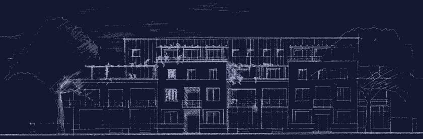 Drei Zugänge erschließen insgesamt 14 Wohnungen. In der Tiefgarage befinden sich 26 Stellplätze |