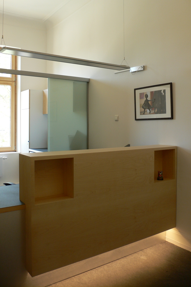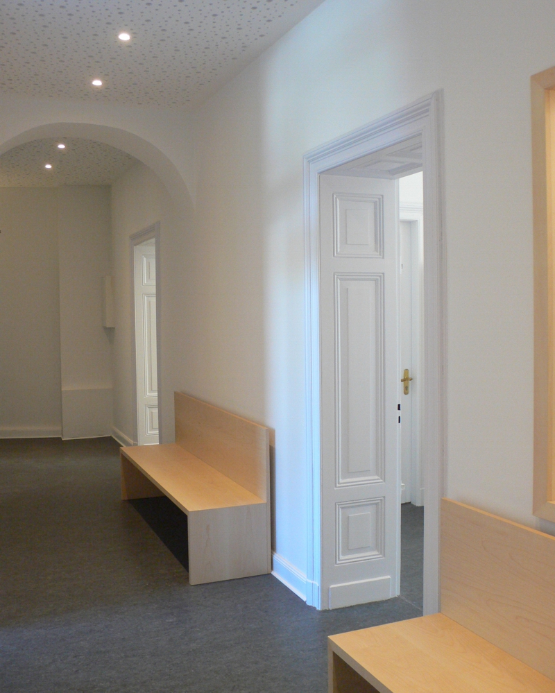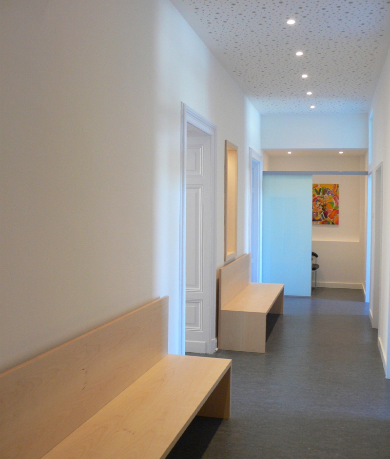 Ziel war es deshalb, die ursprüngliche Raumwirkung wieder herzustellen und durch Umstrukturierung der einzelnen Bereiche einen effizienteren Praxisbetrieb zu erreichen.