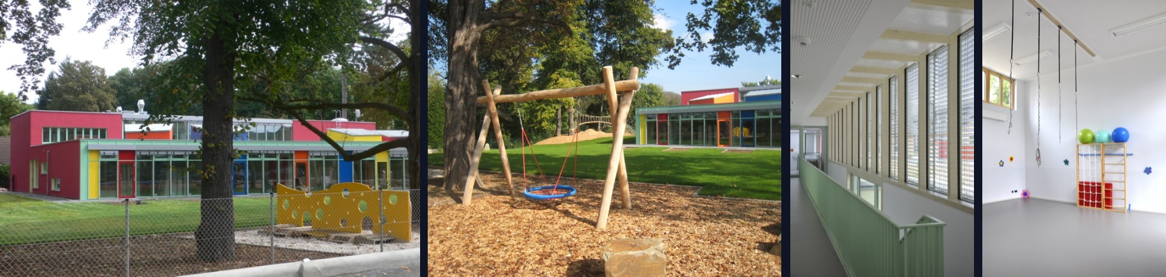 Über 2 Garderobenbereiche werden die im westlichen Gebäudeteil befindliche 4 Gruppenräume erschlossen. Diese sind für U3- bzw. integrativen Gruppen geplant. Den Gruppenräume zugeordnet sind Nebenräume, Ruheräume, Therapieräume sowie die Sanitärbereiche und Abstellflächen.
