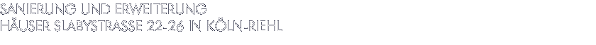 | Nach der kompletten Entkernung erhielten die Häuser 22 und 26 gartenseitig dreiseitig verglaste Anbauten, welche die lichtdurchfluteten Wohnküchen der Wohnungen aufnehmen. Dem Haus 24 wurden Stahlbalkone vorgestellt. Nach Sanierung und Erneuerung des Dachstuhls erfolgte der Ausbau der Dachgeschosswohnungen mit offenem Grundriss, der sich über zwei bis drei Ebenen erstreckt. Insgesamt entstanden 29 Wohnungen in unterschiedlichen Größen und Aufteilungen. |
